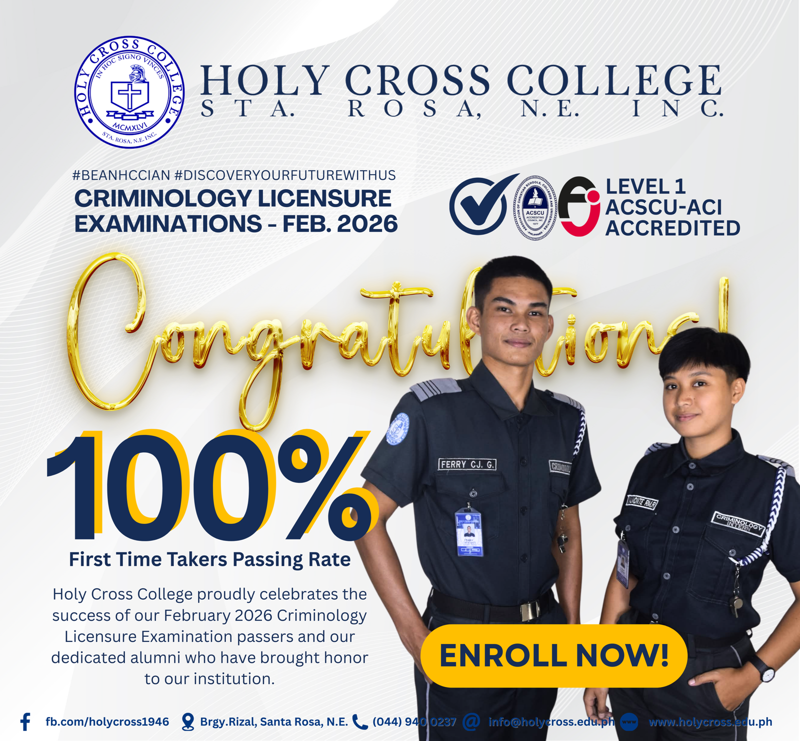 Holy Cross College proudly celebrates a remarkable academic milestone as its Criminology graduates achieved a 100% passing rate among first-time…